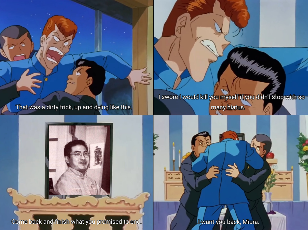 >>219465448I've now seen the same pattern repeated through many different shows.People love intrigue and mystery, but when you actually resolve the mysteries everyone is disappointed and angry.People want to believe in some amazing story that could have happened if you hadn't fumbled it, but there is no such story, and any attempt will be declared a fumble.The only solution is to string the audience along forever like LOST or One Piece. But everyone will hate you when it ends so you have to die before you can finish the story like Berserk.