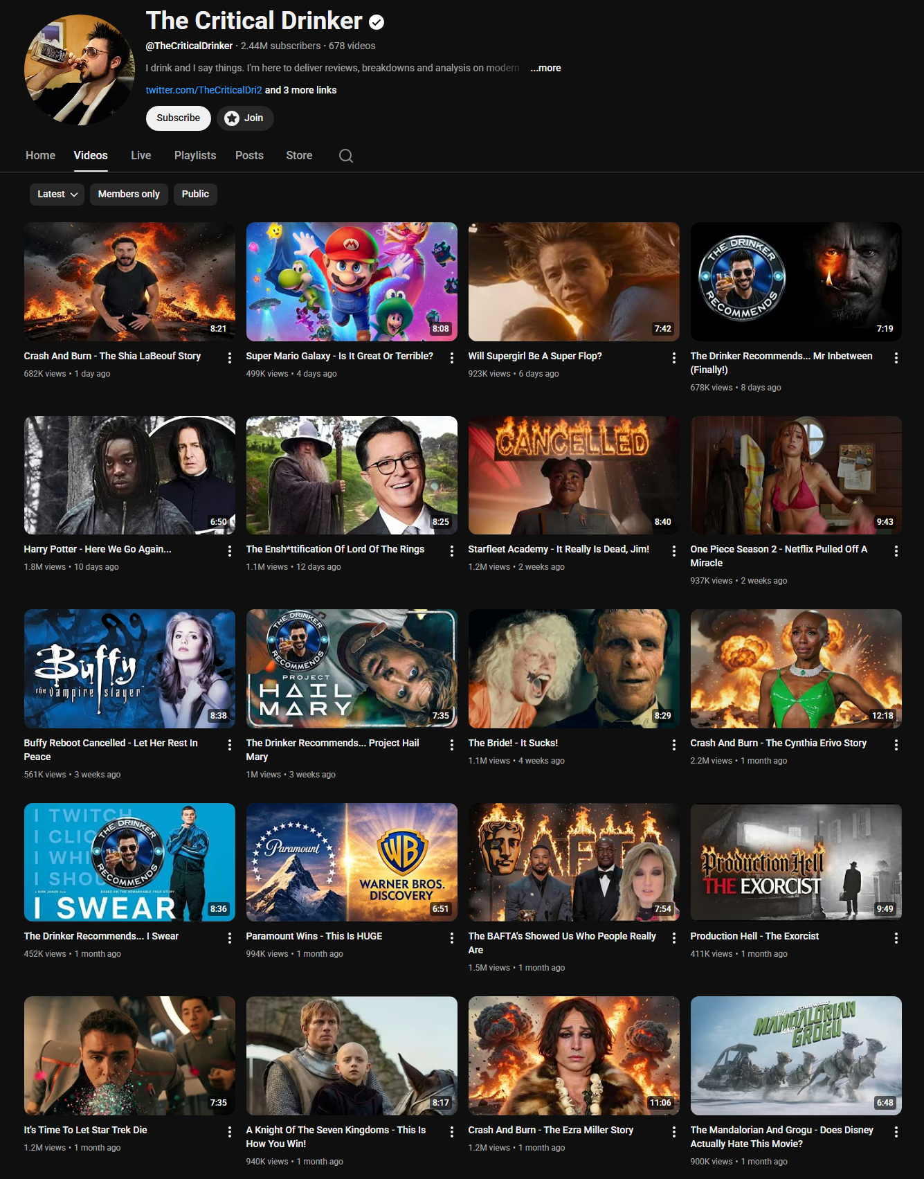 >>219468251>he is actually the biggest movie critic there isI think this says more about the state of movie/pop culture critics at large than anything positive about him