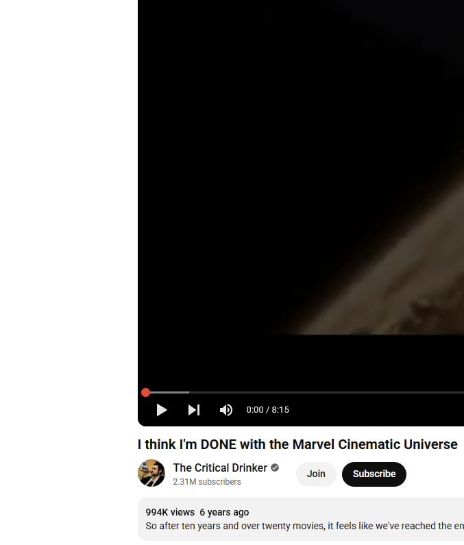 >>219471584>STOP ENJOYING FREE YOUTUBE CONTENT THAT IS MORE ENJOYABLE TO WATCH THAN GOING TO THE MOVIES>YOU CANT CALL YOURSELF A CINEMA BUFF IF YOU ARE NOT ACTIVLY CONSOOMING THE NEXT THING.