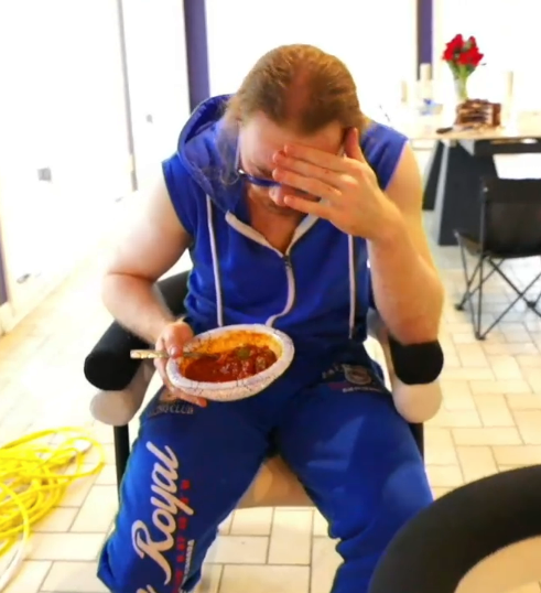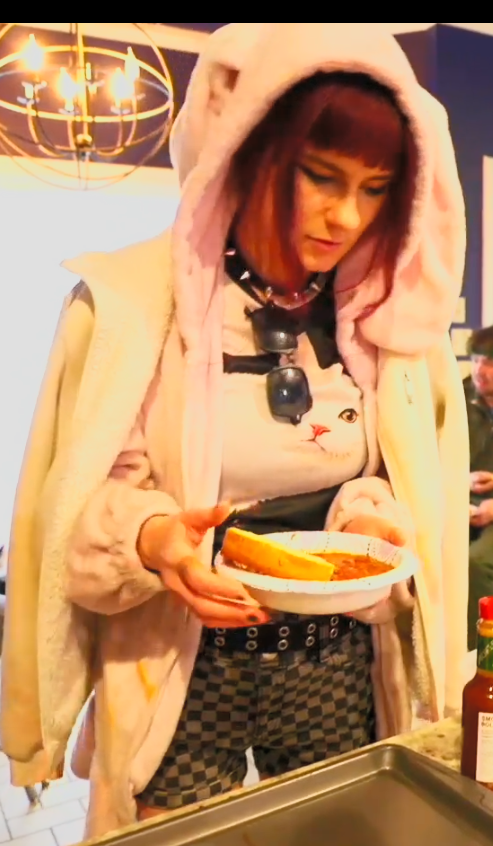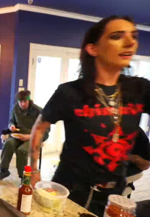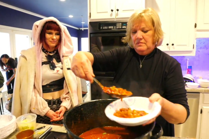 The cranberry sauce in the chili is a reference to Viva La Bam.