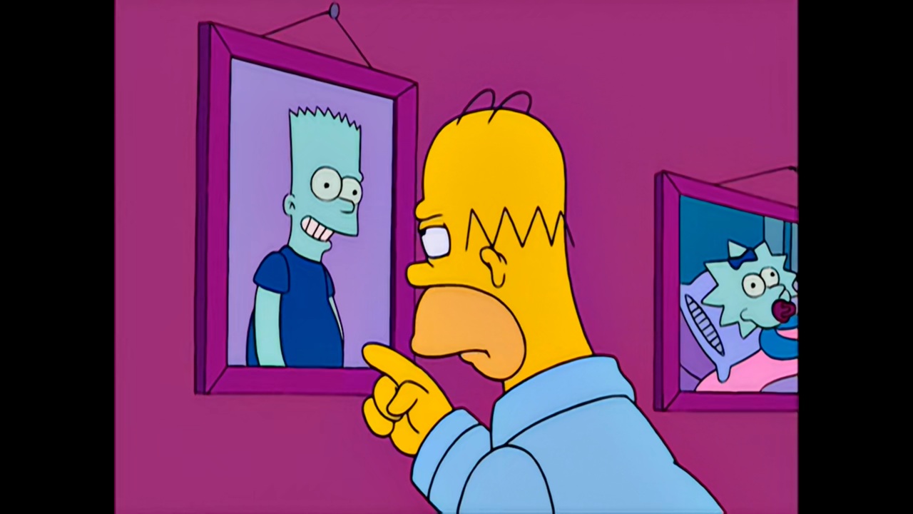 it's dark in the room, homer just had a nightmare about bart and he screamed "HEY THAT'S THE GUY FROM MY DREAM" while pointing at the portrait