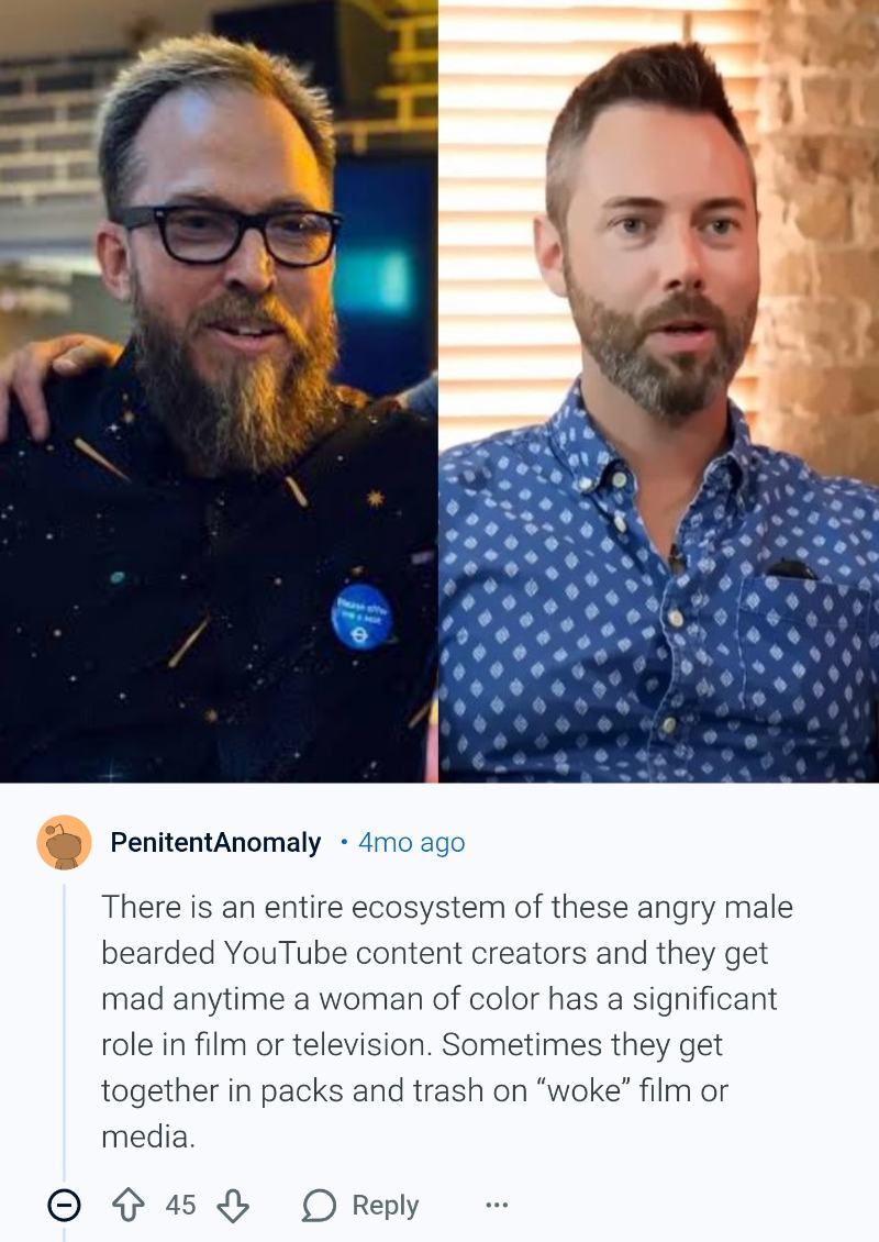 >>219489806Man who talks about pop culture talks about pop culture. This isnt some 3hour in depth essay into why the studios are making these decisions or the culture around it. Its just short criticisms on whats currently out. I genuinely dont see the problem with that.If you dislike a youtuber or dont like their content. Simply dont watch. Thats what I do.