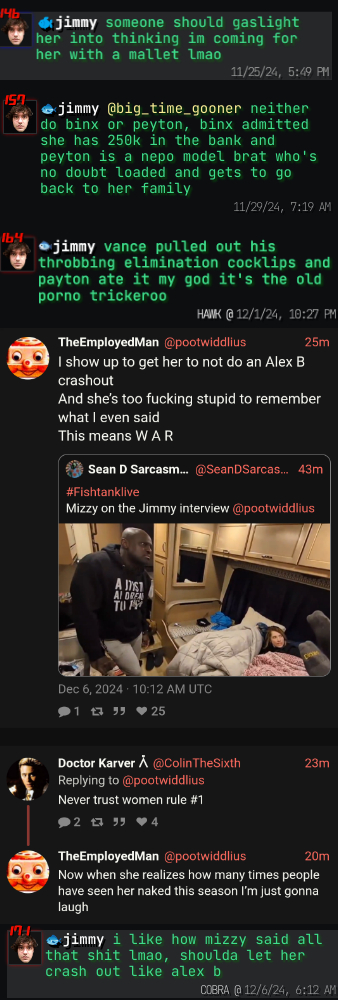 Who cares this shits gay anyways Edition>FTL NEWS:-- BAM'S PARENTS are here...-- Landon is back as a janitor-- Nina’s challenges suck-- Ice Poseidon's gf Kimmee is here...>Links:https://fishtank.rip/https://www.fishtank.livehttps://kick.com/fishtankhttps://fishtank.observer/https://classic.fishtank.livehttps://x.com/fishtankislivehttps://www.instagram.com/fishtank.live/https://www.youtube.com/@fishtankislivehttps://fishtanklive.fandom.com/wiki/Fishtanklive_Wiki