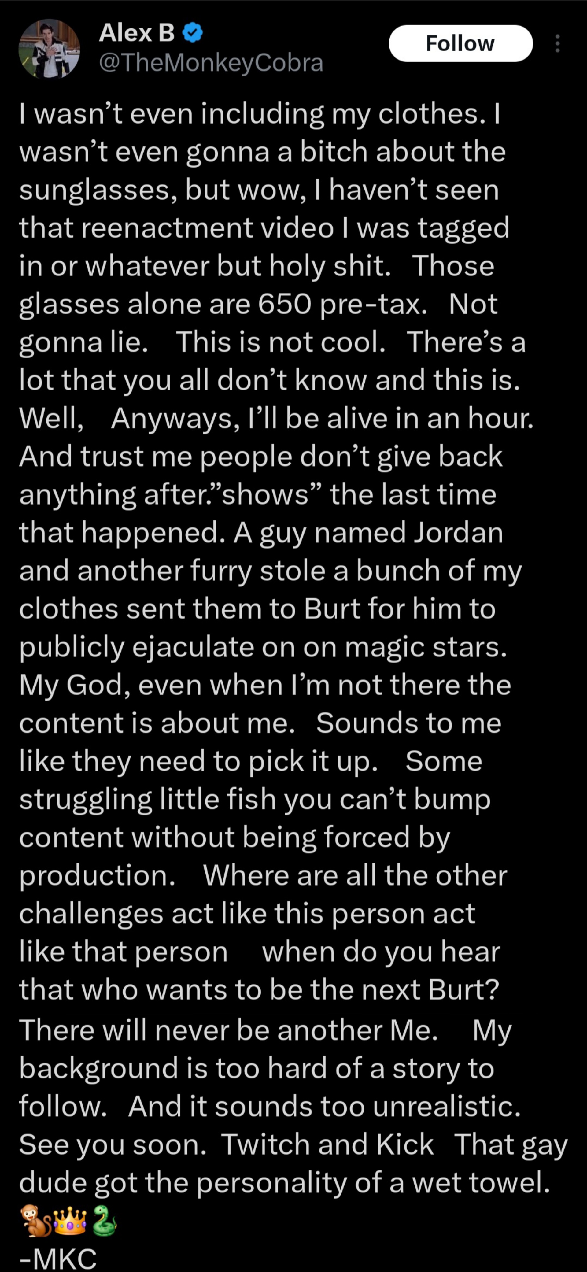 >>219479752>I know about million dollar groupchatsAlex B was too aware, it’s clearly the organ harvesting snuff room