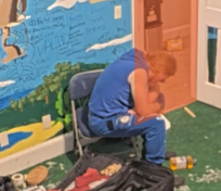 imagine the fish breaking down the door to the goo room and the door collapses on mints