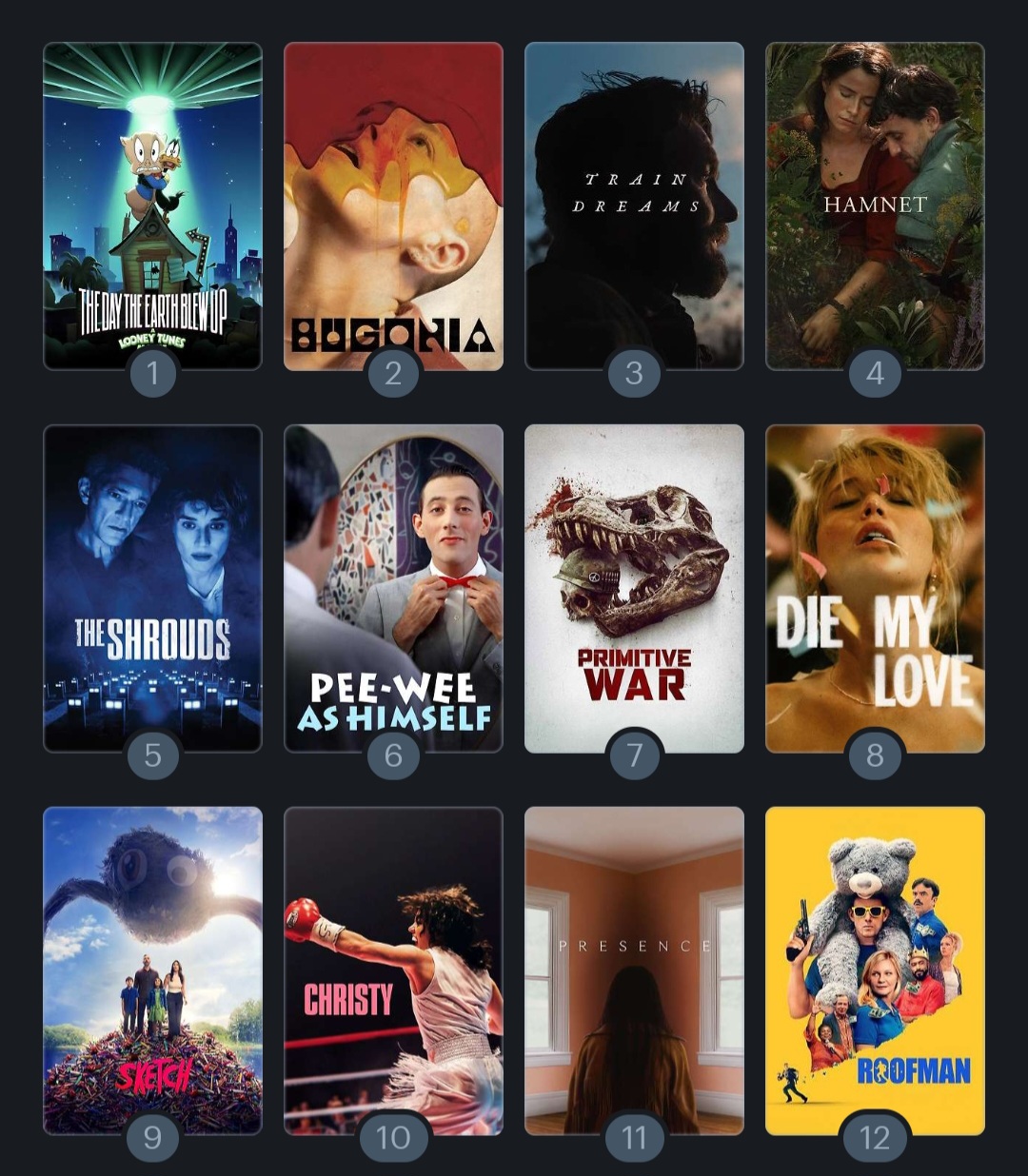 Rate my top 12 of 2025I am Snyder stan, thought Sinners was hot garbage, OBAA overrated and Weapons a snorefest