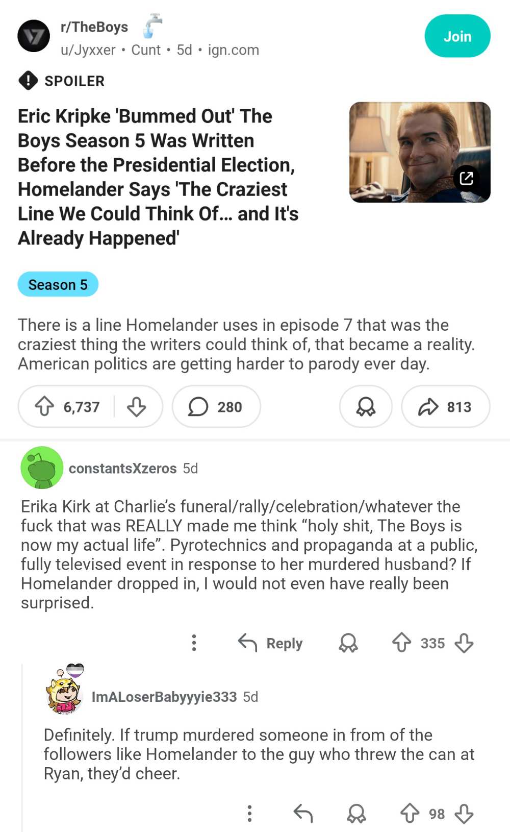 >>219497880No one would watch it if homelander wasn't in it>see: gen v