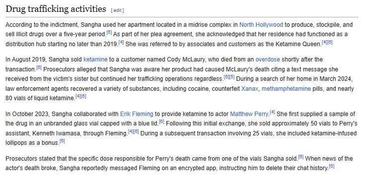 >>219510581>Dr Salvador Plasencia, who supplied the actor with ketamine in the weeks before his death, was sentenced in December to 30 months in prison.>Also in December, Dr Mark Chavez, a California doctor who sold the ketamine to Perry, was sentenced to eight months of home detention and three years of supervised release.Damn, doctors were in on it as well.