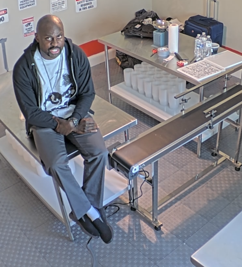 -- Burt is here working the goo factory