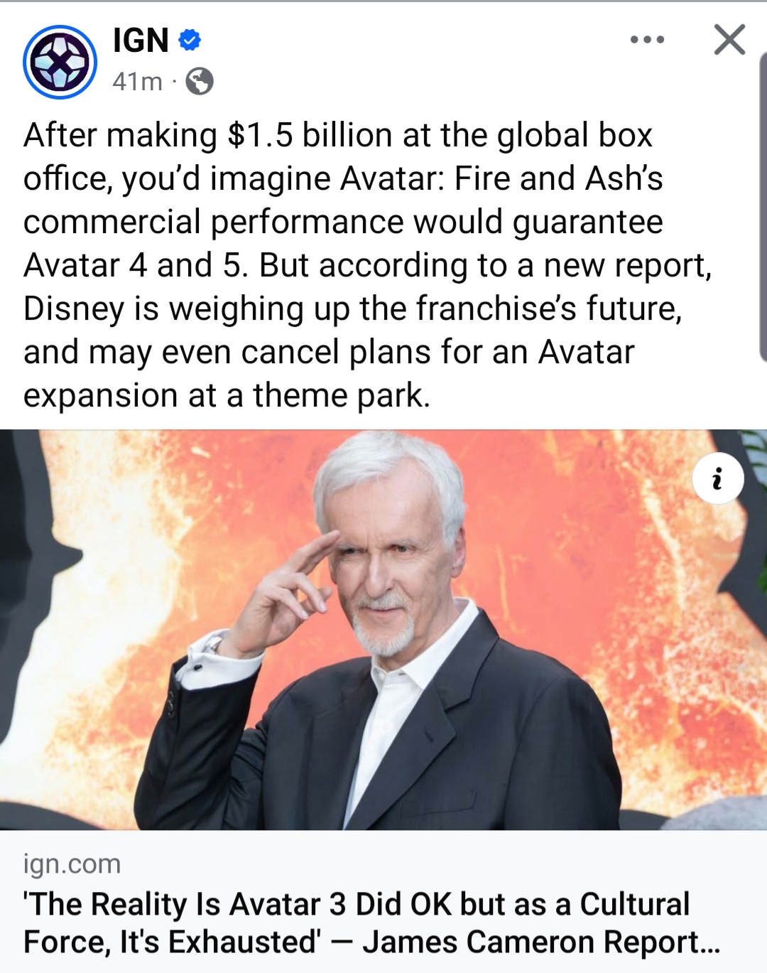 So I imagine the struggle being, Cameron that wants to run the ip like he wants to; vs booting him out like Lucas, and Disney makes an effort to release a new avatar project every year till it stops bringing in money