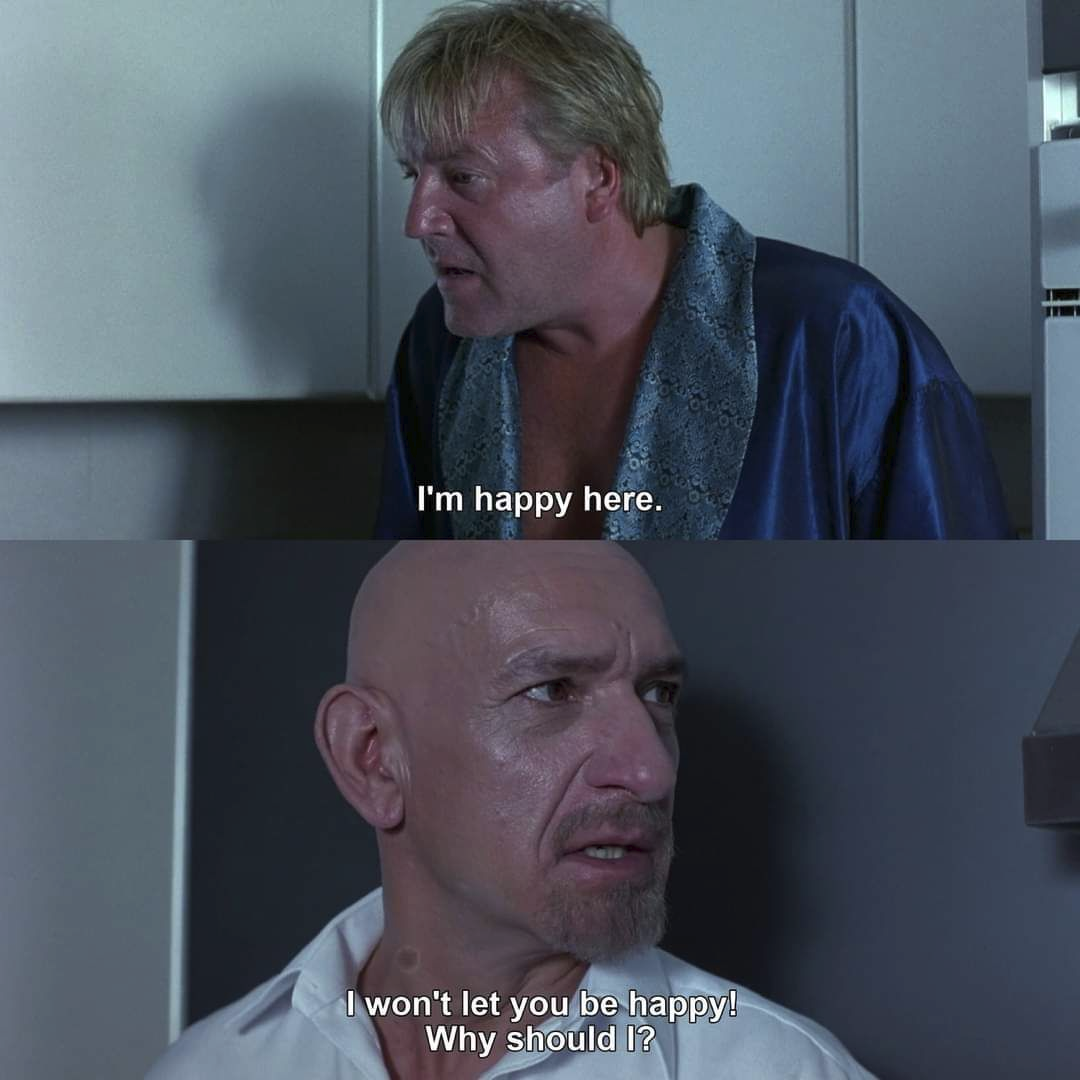 >>219549147don looks like he does 500 pressups before 5am and has nothing but a single wooden chair in his home that he sits on and stares at the walls for 8 hours every night. kingsley pulls off the intimidating psycho better than any antagonist i can think of. can you think of a scarier one?