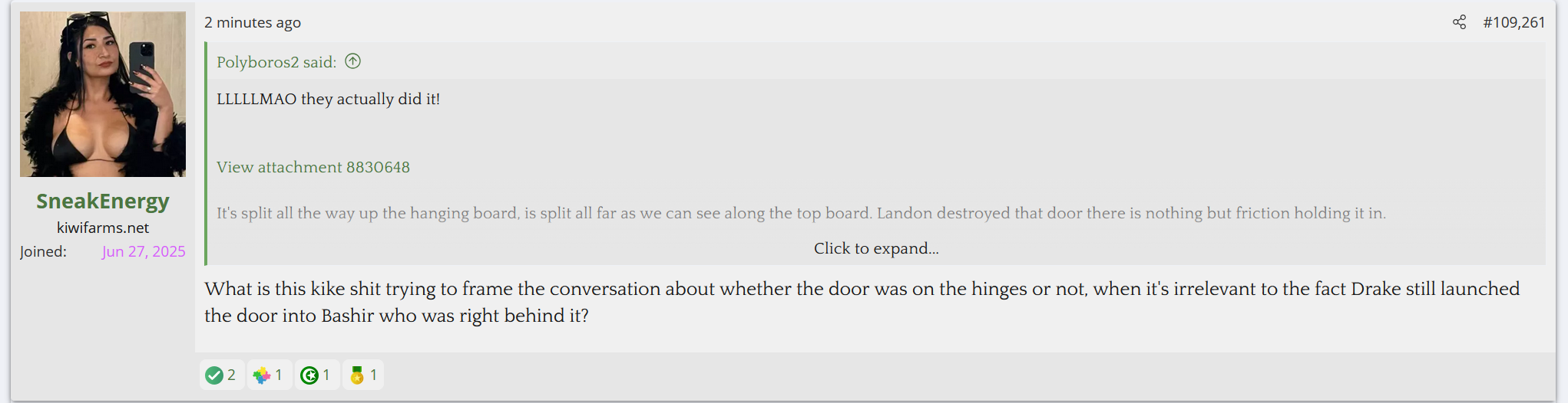A mil anti Bashir post on Kiwifarms literally gets bombarded with dozens of dumb reactions its funny