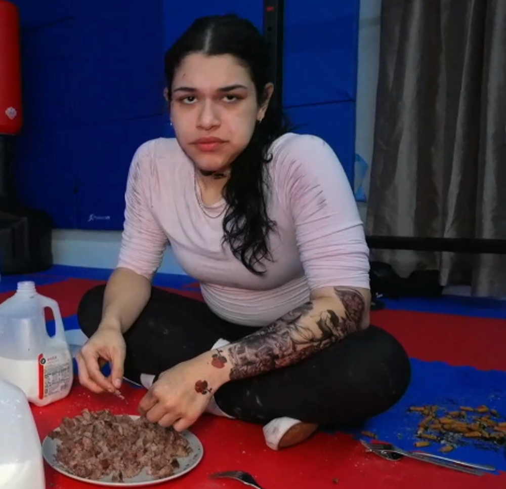 >>219552275this shit was fucking revolting, sitting in a puke room surrounded by milk just scarfing down cold meat, what a fucking freak retard, real funny bitch