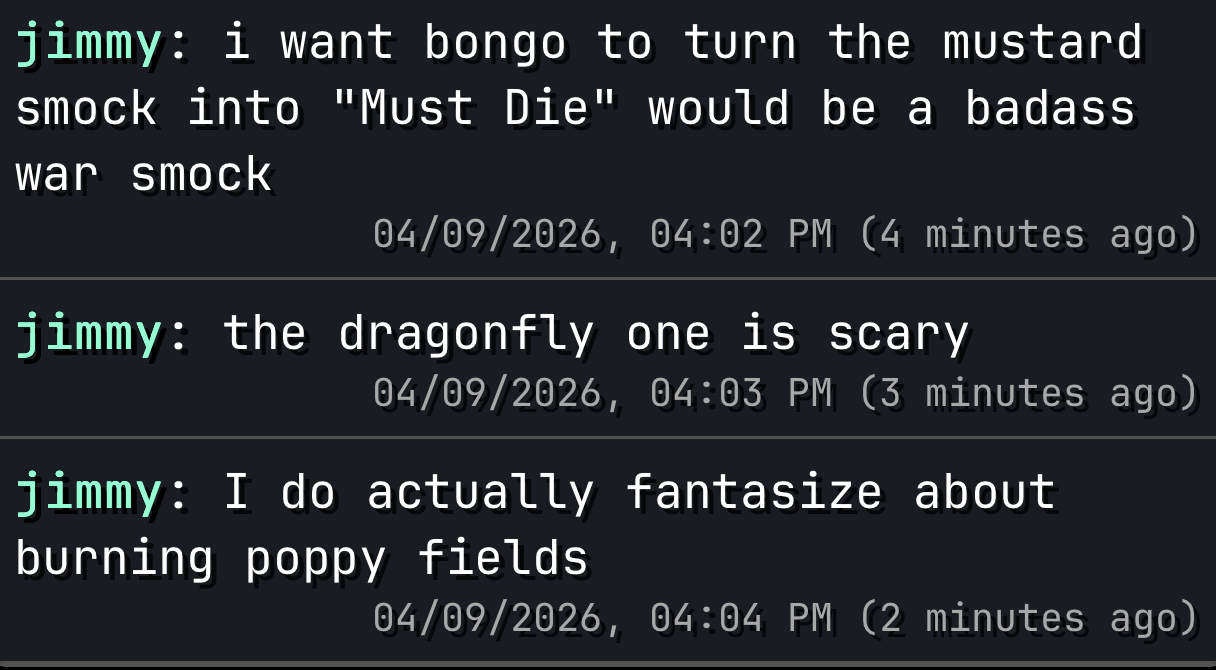 >vimp: I feel evil>chad: just accept feeling that way>laura: don’t worry, I am evil>vimp: okay