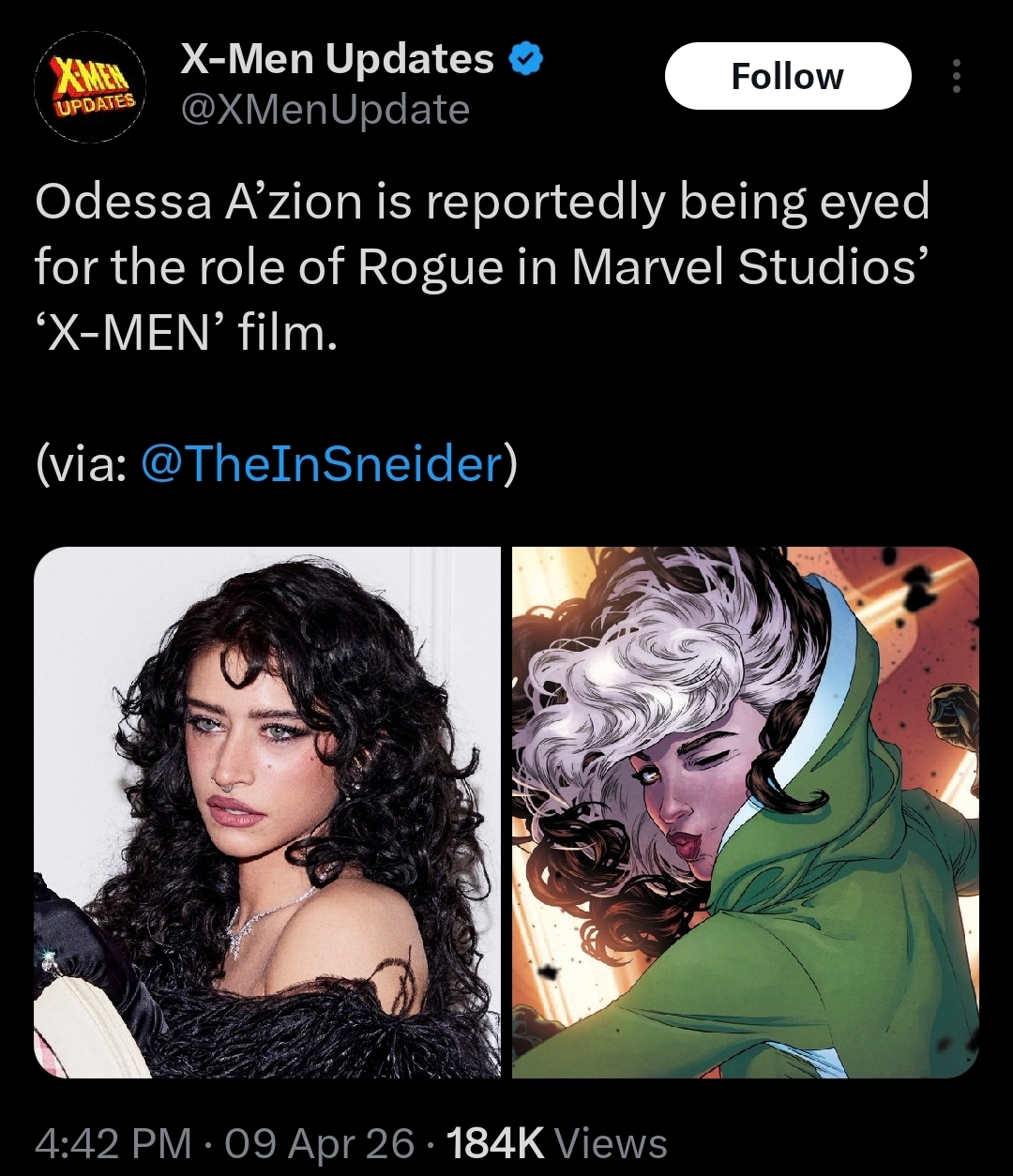 >Odessa A'Zion is reportedly being eyed to star as Rogue in the upcoming 'X-MEN' film.Do you think she has the talent to make it work?