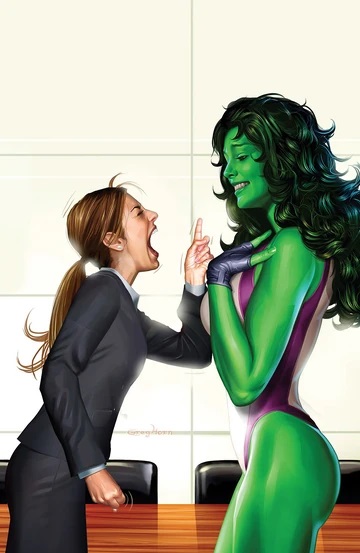 >>219573516She's a 6/10 in human form, which is a 2/10 in the supermodel world of marvel comics, so she intentionally hulks out to get attention from men who want to fuck She-Hulk.