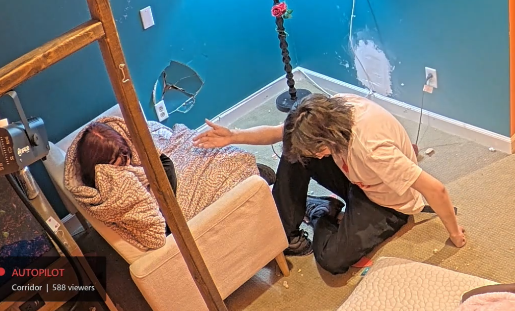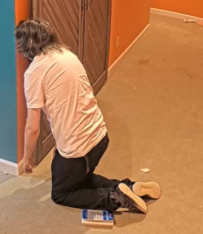 landon fell asleep in the corner of the goo room and they left