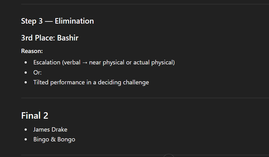 -- James and Bashir will battle to be in the final two
