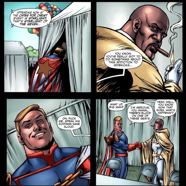 >>219593077One of Hughie’s childhood friends is a stereotypical transgender named Bobbi. It’d be interesting to see how the show handled it, like Will from Invincible being gay but they’d have to sugarcoat it a hell of a lot more.Also the scene where Stormfront is beaten to death is way more violent, so make of it what you will.