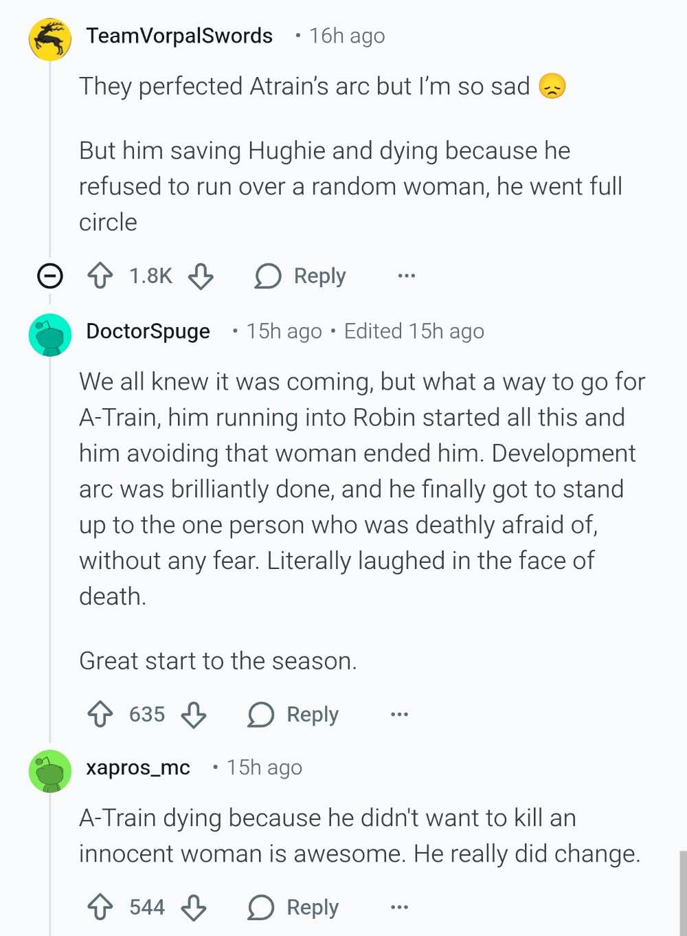 >>219585048>Wouldn't it have been crazy if Soldier Boy wasn't surprised by Butcher being a supe because he was already a supe during all the time they spent together and he's only like a few waking hours removed from the time they fist fought each other?That one legit bothered me.The rest is nitpicking bullshit.