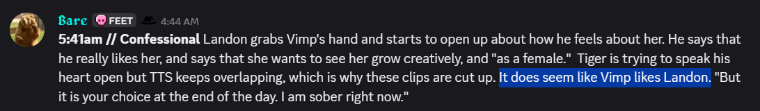 >>219583871Burt has been free since like 7pm tonight and him being unleashed has been a disaster for Landon's mental health.