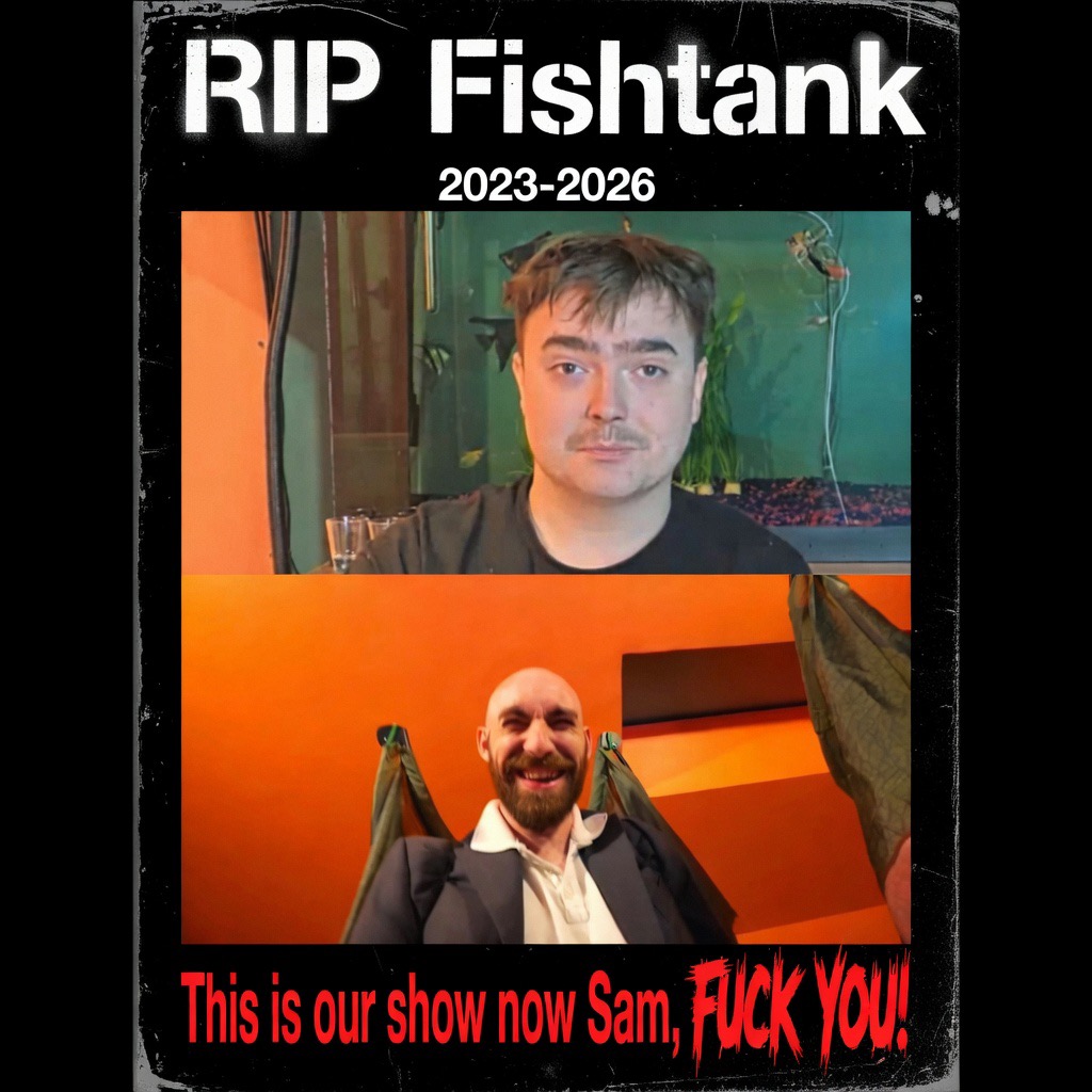 Mints edition--Landon rejected by VIMP, he's now sober and still crying over it-- Burt has mogged Landon to death with no chance for recovery-- The Twins have won immunity and are now in the final-- James and Bashir will battle to be in the final two-- /ftl/ is seething because they doubted how smart the twins are again>Links:https://fishtank.rip/https://www.fishtank.livehttps://kick.com/fishtankhttps://fishtank.observer/https://classic.fishtank.livehttps://x.com/fishtankislivehttps://www.instagram.com/fishtank.live/https://www.youtube.com/@fishtankislivehttps://en.wikipedia.org/wiki/Fishtank_(web_series)https://fishtanklive.fandom.com/wiki/Fishtanklive_WikiPrevious >>219590017