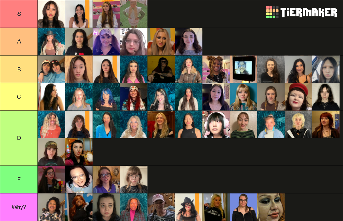 >>219591864Im a man and I'd kiss>LauraI appreciate how ride or die she was so I forgive her for being disgusting>Binxas a sex haver I believe she is probably great in bed>Bliccyshe is funny>Emmashe looks needy and I like needy girls