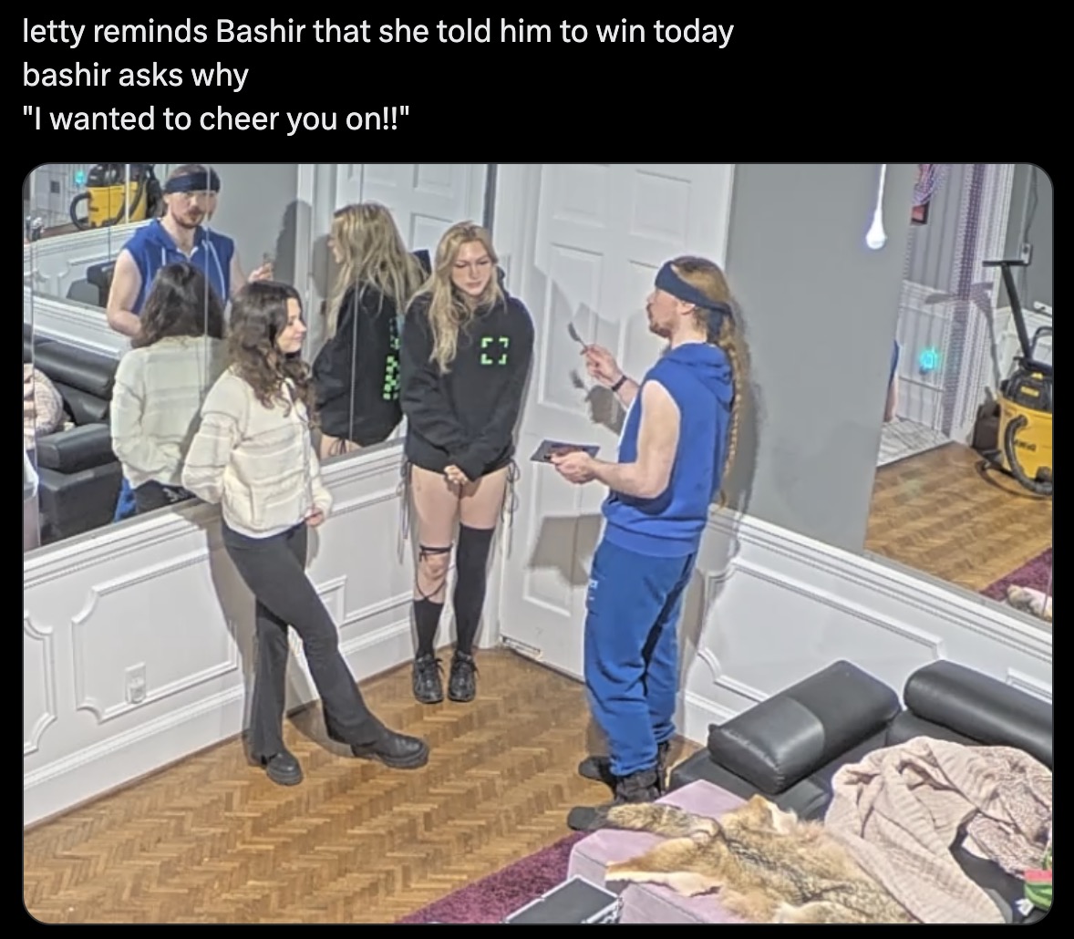 >>219593315She and Blue Vimp are putting on a "show" in the basement.