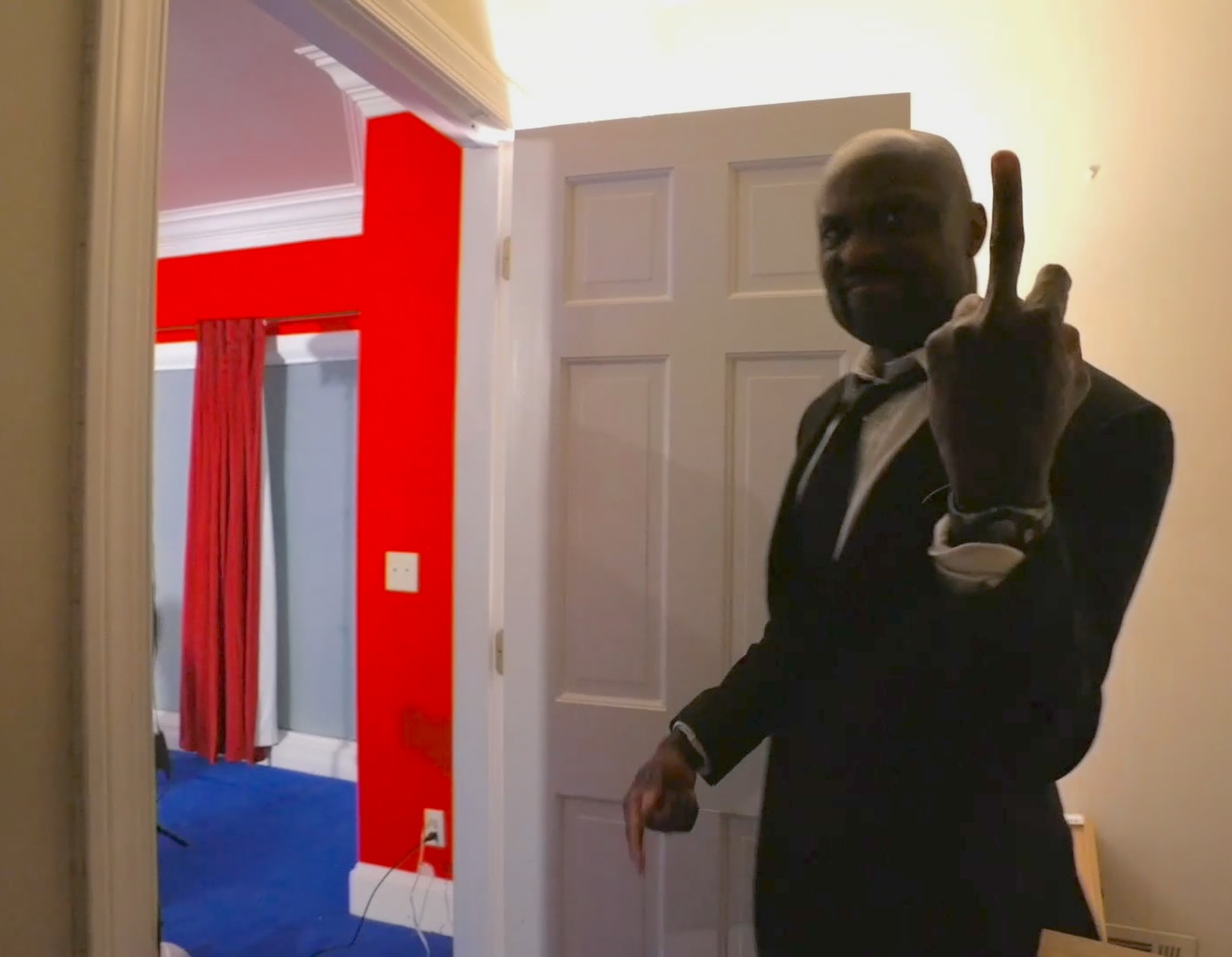 Burt has three stooges reactions.