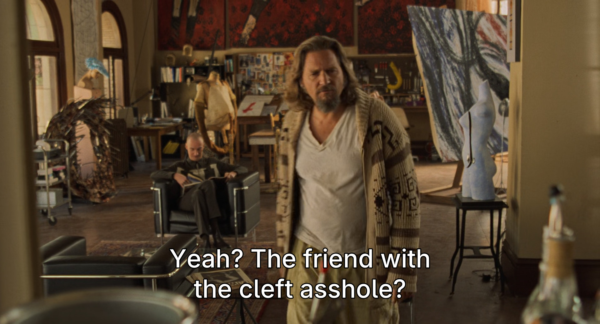 >Maude becoming uncomfortable when the Dude says "Johnson" immediately after failing to make him uncomfortable by saying "vagina">Walter turning out to be mostly right about everything until he thinks the Big Lebowski isn't actually a cripple, and he says "I've never been more sure of anything in my life">"No, Donny, these men are nihilists. There's nothing to be scared of.">Dude saying "He treats objects like women, man" not actually being a mistake because of Jackie Treehorn's diatribe about VR porn being the future>The marmot isn't a marmot>The Pomeranian isn't a Pomeranian >Bunny isn't Bunny, she's Fawn