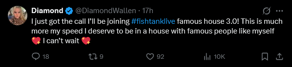 >>219635706Yeah. And then consider the closest person to her outside the tank is Binx.