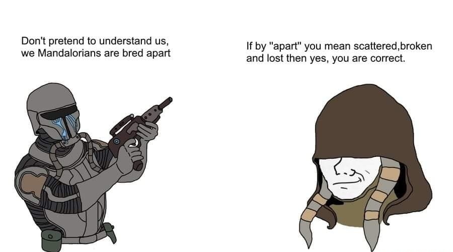 >Show clearly sets up conflict between BoKatan and Mando early>Does nothing with this for 2 season>At the tail end of season 3 have Mando go "UHHHHHHH ACTUALLY SHE'S THE TRUE LEADER OF MANDALORE BY TECHNICALITY THAT NONE OF YOU SAW">It doesn't even matter anyway because they all just kill the villian together anyway and the darksaber is destroyedGod this series is so fucking badly written