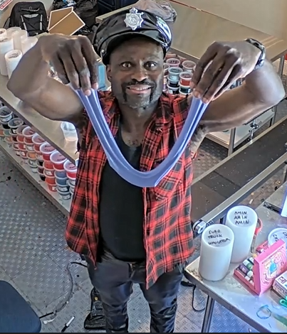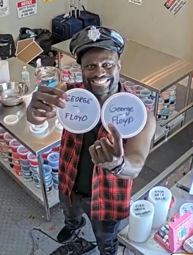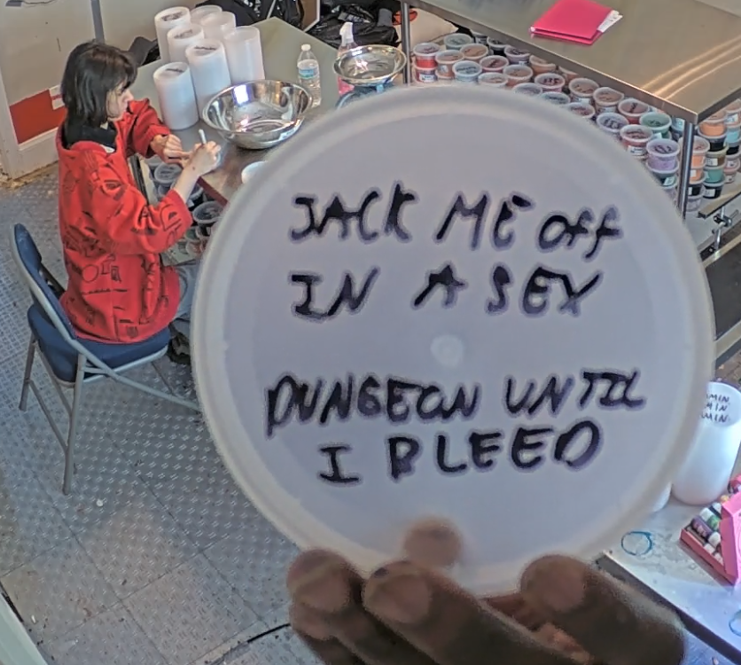 >Today's content is watching people pay a gay black man to write their names on lids