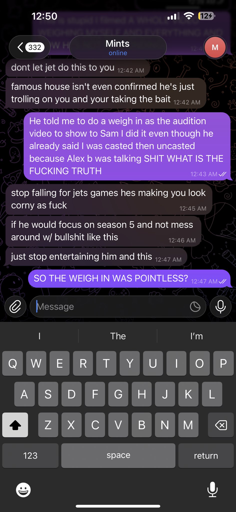 >>219667684Jet was trying to recruit bliccy in confessional asking her long term plans after the tank