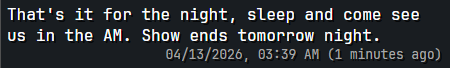 >>219701882AM is over in 8 hours