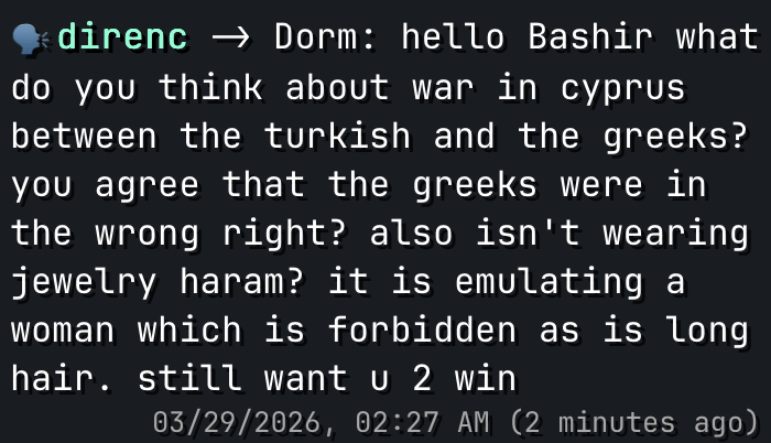 >>219703199she's still at it? when bashir comes back up for the last day will she admit she wants that ginger muslim or just shit test again?