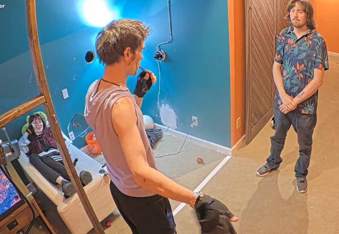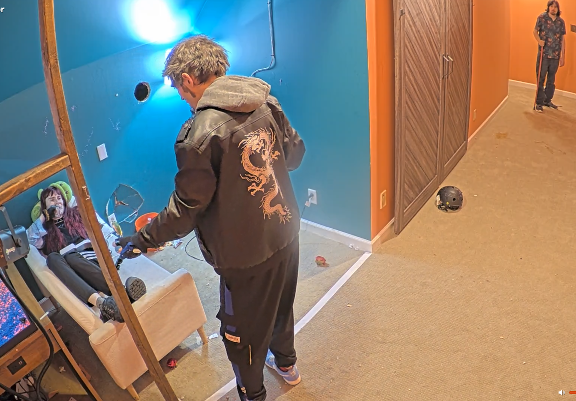 >>219700554push a watermelon with your head while blindfolded on a route through the house. took 2 hours and both were gassed, then bashir got lost. then wes made drake fight him and drake won.