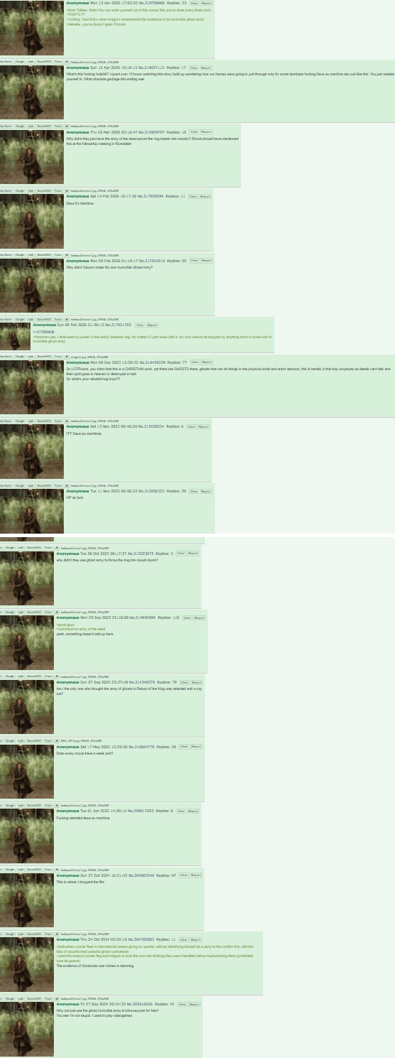 >>219705482>>219705511>>219705517Did no one here read the books?Aragon had no power to command the Ghost Army. They only followed him because Aragon promised to release them from their curse if they honored their original oath.Their original oath was that they would "Rise up to defend Gondor's lands from an invading army in battle". And that they would do this only once. That was their oath. Their oath only applied to the lands of Gondor. The oath was NOT to suddenly leave Gondor and attack Mordor. They were defenders only. Once the ghost army defeated the invading enemies, they demanded Aragorn honor their agreement. Aragon agreed and set them free. The Ghost army could have just killed Aragon and all of Gondor if he refused. He had no power to command them. They only followed him Voluntarily.Lastly even if they wanted to attack Mordor it would be incredibly stupid. They were Ghosts. And Sauron was a well known necromancer. A necromancer is someone who can command Ghosts and the Undead. That's why Sauron had undead ghost Ring riders obeying his orders. Sauron very easily could have taken control of The ghost army through dark Magic.That's why Gandalf and everyone says using the One Ring to fight Sauron is stupid. You can't fight evil with evil magic. Sauron created the ring and knows how it works inside and out. He is much better at using evil magic than anyone else. Sauron can only be defeated through goodness and sacrifice.