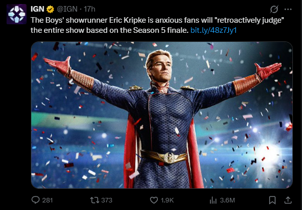 Do they realize that when Homelander never actually goes on a homicidal rampage and destroys his image, that the audience will be upset about having been blue-balled for the better part of a decade?