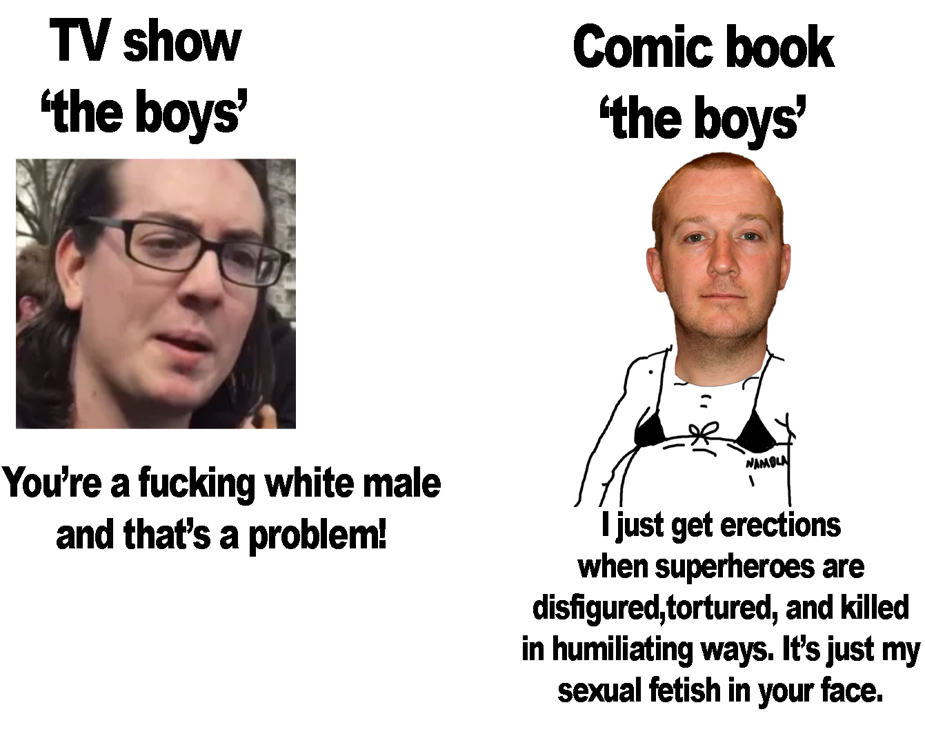 >>219708846Butcher isn't a villain though. He's a jackass but he's right, even hughie knows it he just doesn't like it.They really don't have the material to turn Butcher suddenly into some "big bad" that has to be stopped it doesn't work regardless of what the comic did or didn't do.