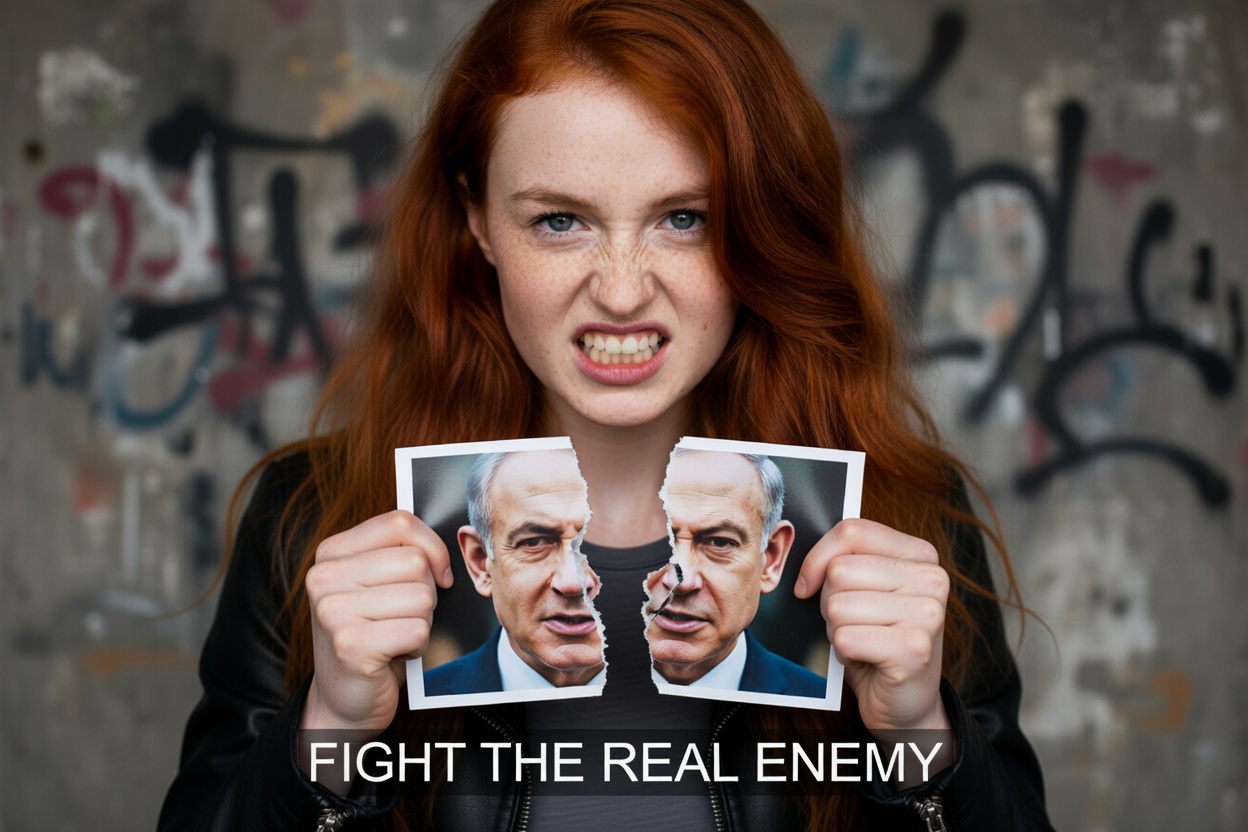 Why did she rip two pictures of Netanyahu in half