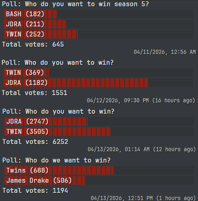 Production already made it clear they want Drake to win by adding the new averaging rule to twins putting them at an immense disadvantage.