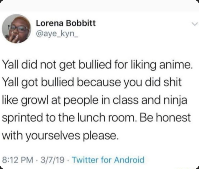 >nooo all bullies are based and only targets weird people
