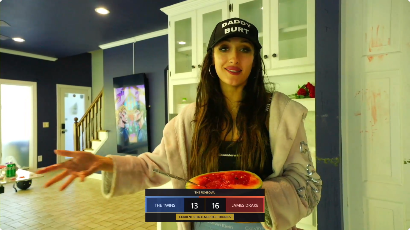 Score: Twins 13 | James 16>FTL News:---Production has no idea what they are doing---Bashir and Blane and Blanes mom joined the finale---Finale going down-- Will James Drake continue his lead or will the twins make a comeback-- alex has returned to argue with burt>Links:https://fishtank.rip/https://www.fishtank.livehttps://kick.com/fishtankhttps://fishtank.observer/https://classic.fishtank.livehttps://x.com/fishtankislivehttps://old.reddit.com/r/fishtanklive/https://www.instagram.com/fishtank.live/https://www.youtube.com/@fishtankislivehttps://en.wikipedia.org/wiki/Fishtank_(web_series)https://fishtanklive.fandom.com/wiki/Fishtanklive_WikiPrevious: >>219724557