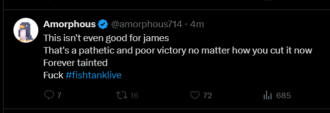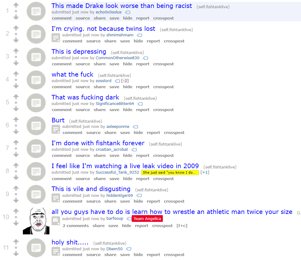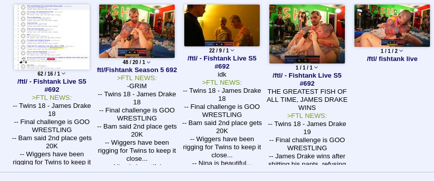 >FTL NEWS:-- Twins 18 - James Drake 18-- Final challenge is GOO WRESTLING-- Bam said 2nd place gets 20K-- Wiggers have been rigging for Twins to keep it close...-- Nina is beautiful...Links:https://fishtank.rip/https://www.fishtank.livehttps://kick.com/fishtankhttps://fishtank.observer/https://classic.fishtank.livehttps://x.com/fishtankislivehttps://old.reddit.com/r/fishtanklive/https://www.instagram.com/fishtank.live/https://www.youtube.com/@fishtankislivehttps://en.wikipedia.org/wiki/Fishtank_(web_series)https://fishtanklive.fandom.com/wiki/Fishtanklive_WikiPrevious: >>219735822