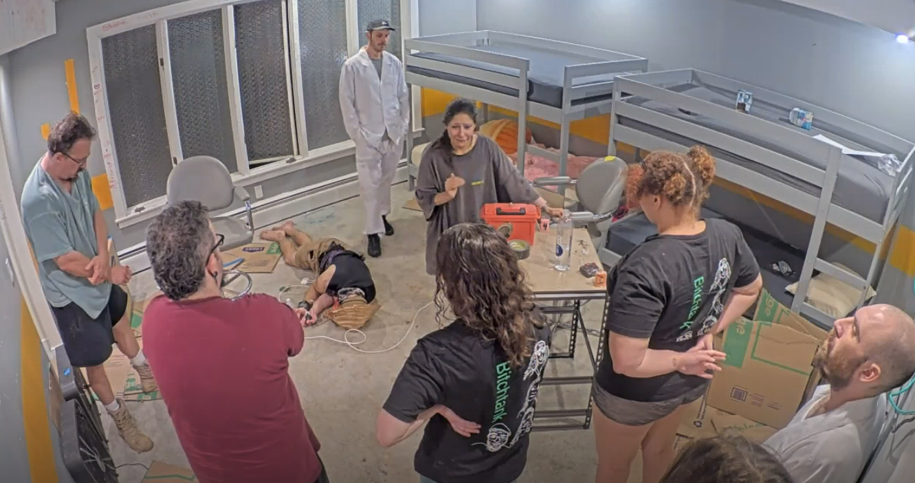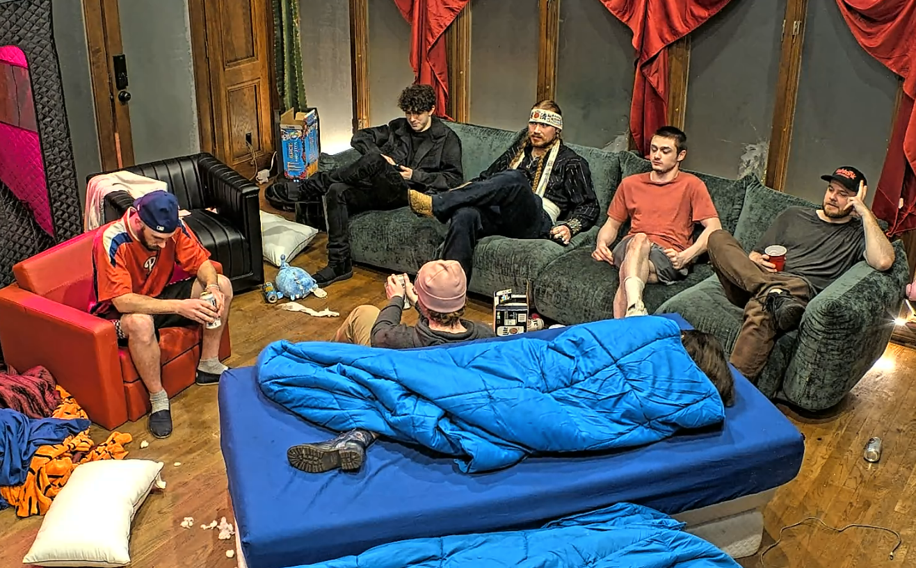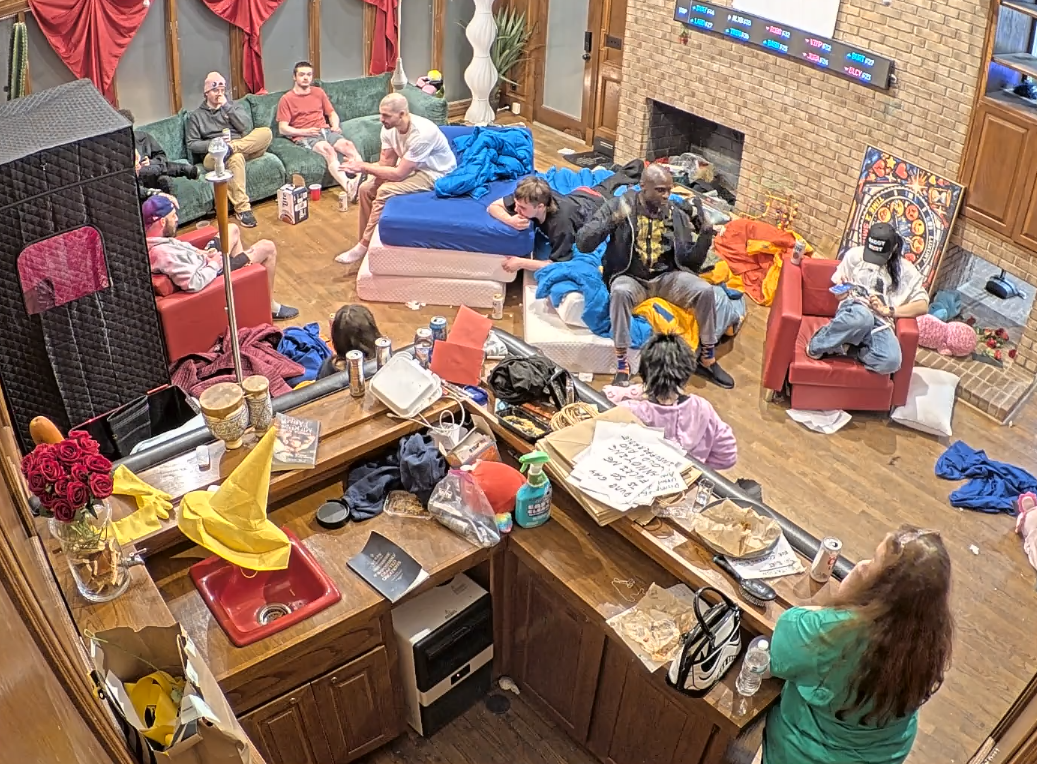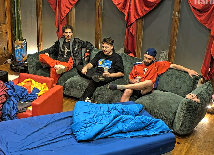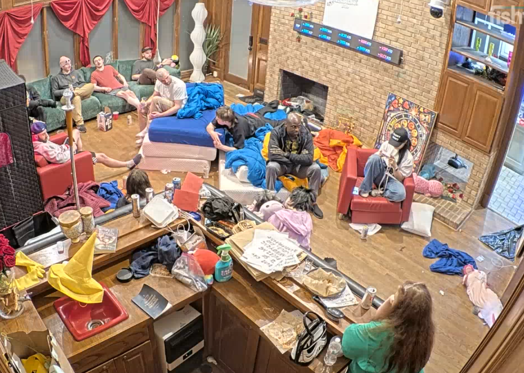 What is happening in the tank post-ending>house has mostly emptied, people and production are going in and out the back door so I presume there is a party in the back yard>freeloaders and bongo are walking around>Blane says everyone (or just Bashir) is going to his mom’s place after to hang out>Vimp shills her socials>everyone is looking for Bingo>they find her in the bathroom>she comes out and seems okay but quiet>everyone leaves to the basement