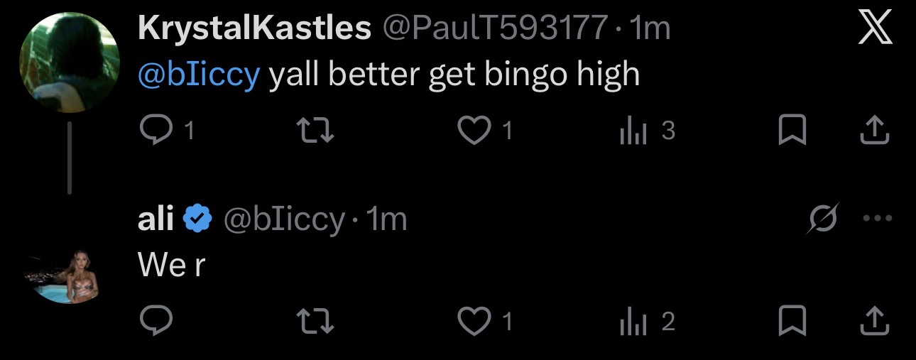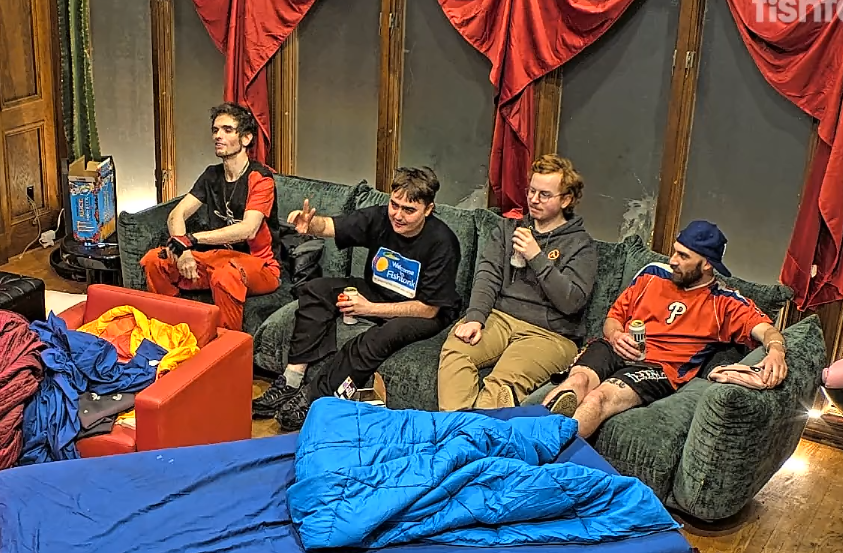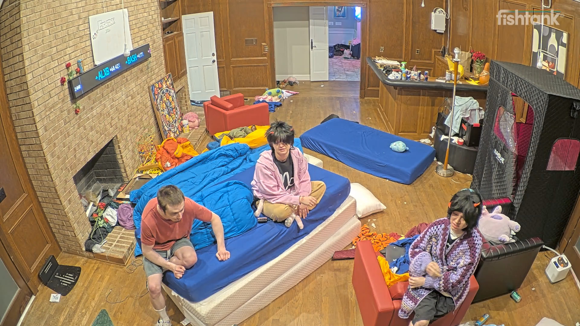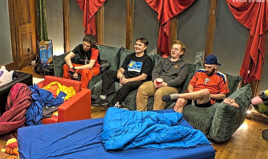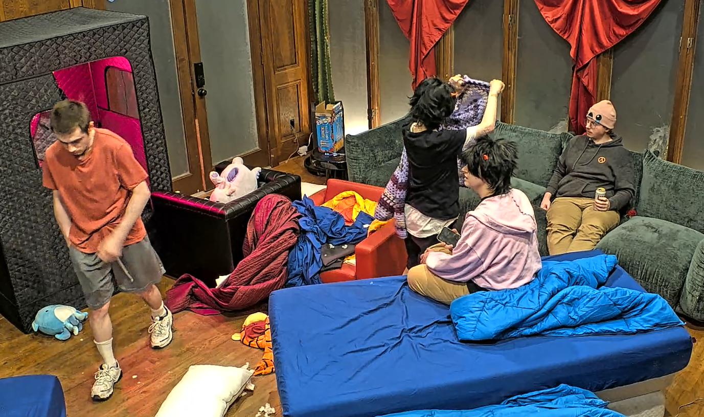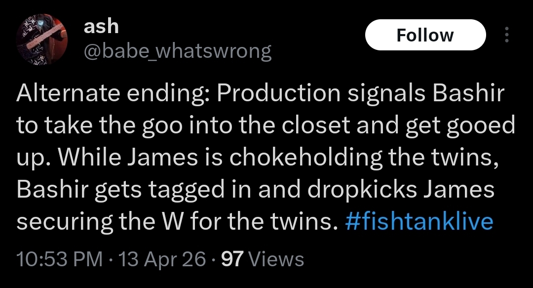 What is happening in the tank post-ending>house has mostly emptied, people and production are going in and out the back door so I presume there is a party in the back yard>freeloaders and bongo are walking around>Blane says everyone (or just Bashir) is going to his mom’s place after to hang out>Vimp shills her socials>everyone is looking for Bingo>they find her in the bathroom>she comes out and seems okay but quiet>everyone leaves to the basement