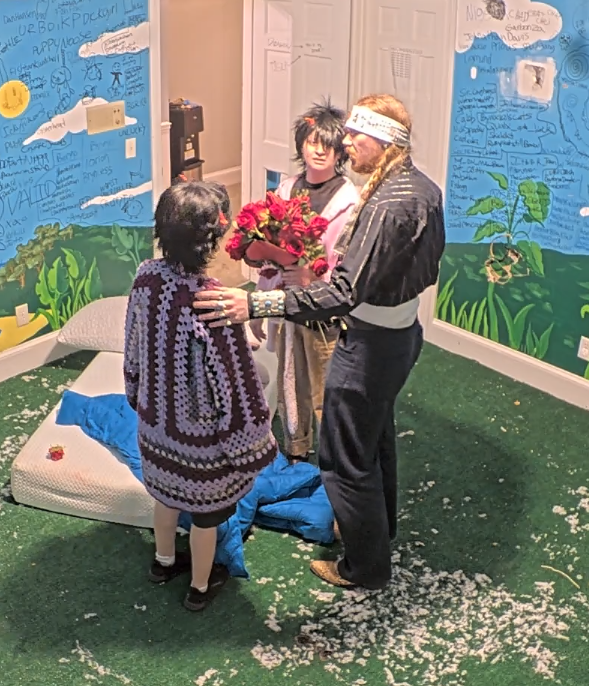 THEY'RE RUNNING A TRAIN ON BINX IN THE BASEMENT