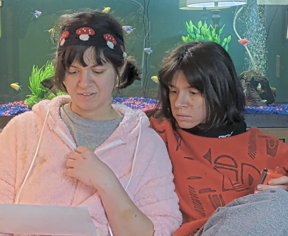 everyone hanging out except for vimp and blue vimp
