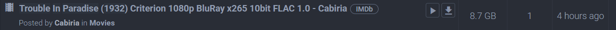 qBit's search (even with plugin) isn't great. I was looking for Trouble in Paradise and the most seeded result was 1.37gb, while on Twitter I found a 21gb version. I didn't know twitter had so many archivists. If you're not on private trackers, it's probably better to search on twitter.